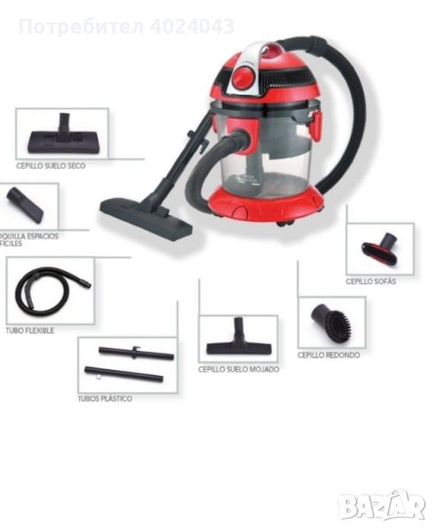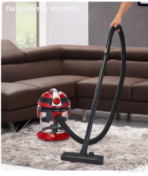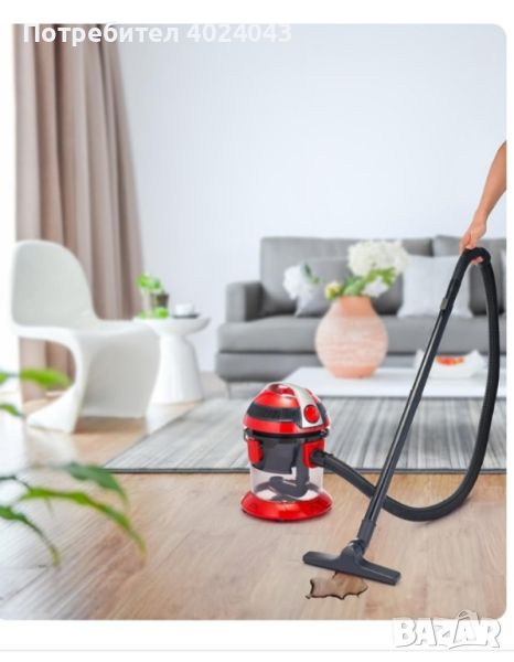 Компактна прахосмукачка с воден филтър. Променлива мощност. Функция издухване. Капацитет: 10 л. Дълъг кабел за по-голям работен радиус. Корпус с място за аксесоари. Самоохлаждащ се мотор с вентилатор и ниска температура при работа. Циклонна филтрираща система. Измиващ се филтър. Изходящ филтър. Прозрачен контейнер за прах.