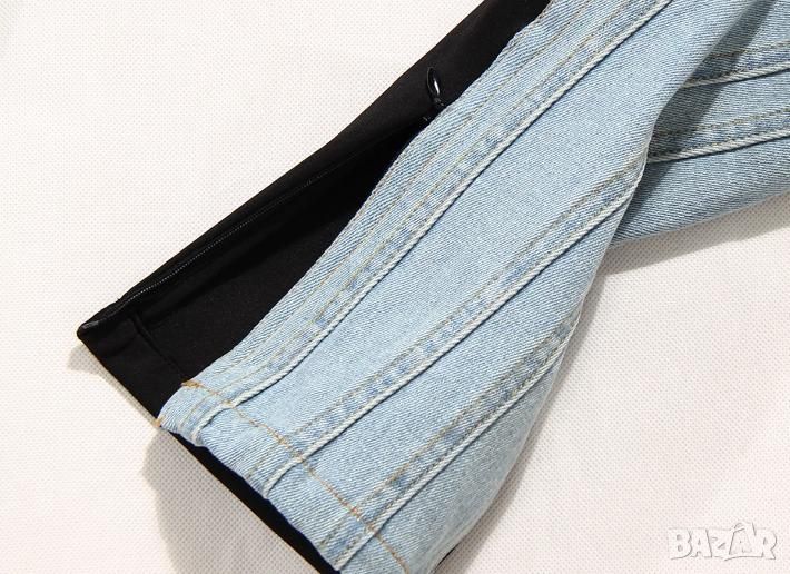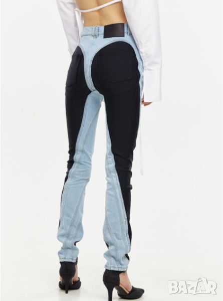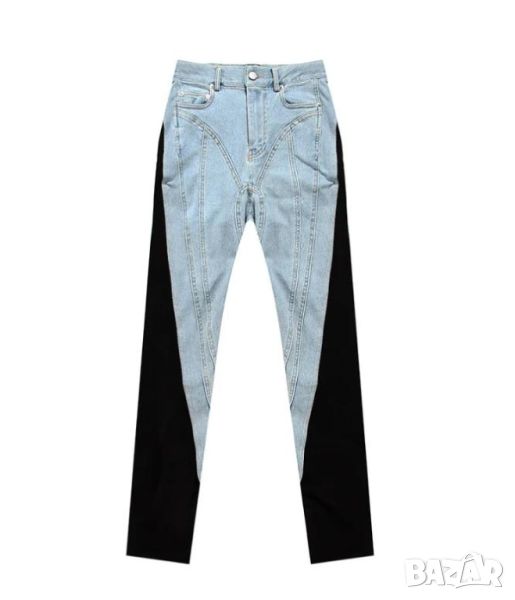 По Модел на MUGLER Модни Дамски Джинси Корейски Дънки с Висока Талия Пачуърк Вталени Разтегаем Модел → Обява 46660620
