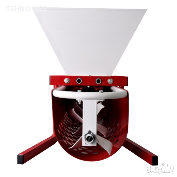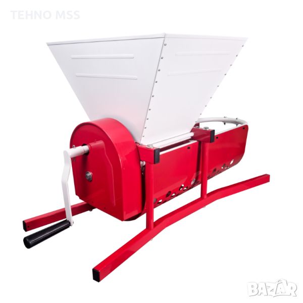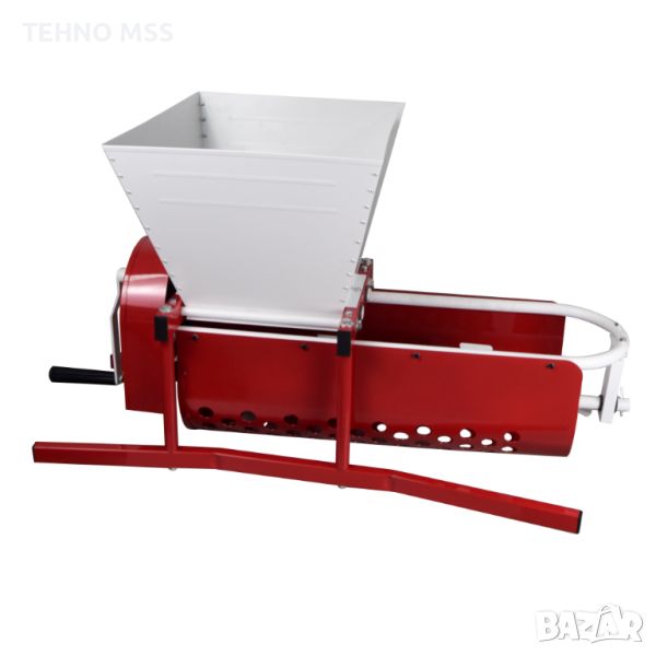 Гроздомелачката се поставя върху бъчвата, в която се събира смачканото грозде, и дръжката се завърта. Преди употреба измийте добре трошачката с водна струя.