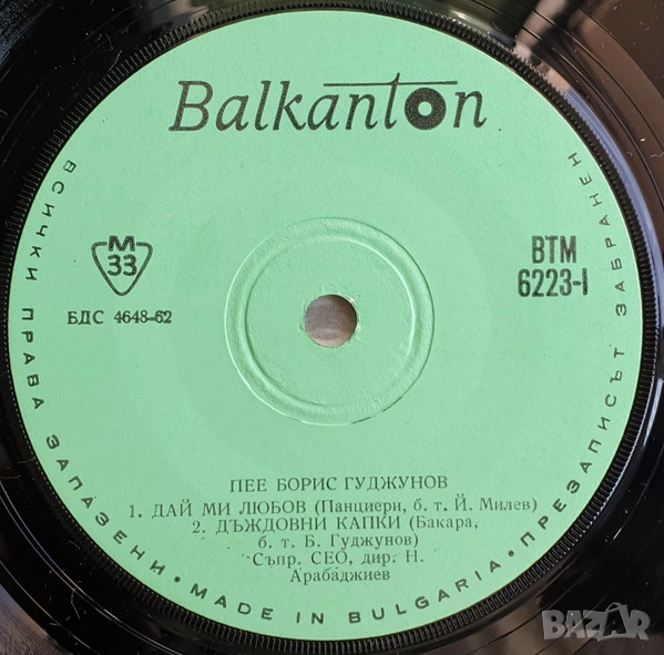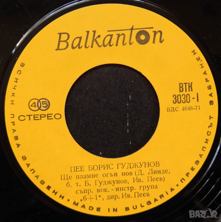 Борис Гуджунов – Пее Борис Гуджунов 7" сингъл ВТК 3030 в отлично състояние, с оригинална обложка. Цена 10.00 лева.