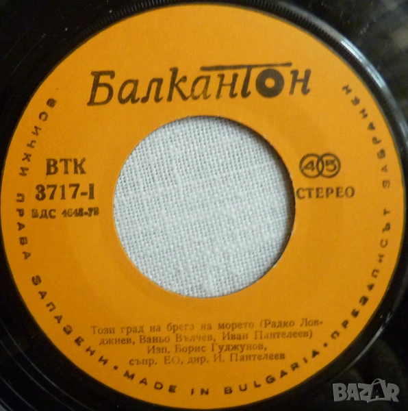 Борис Гуджунов / Панайот Панайотов – Този град на брега на морето / Момчето, което говори с морето 7" сингъл ВТК 3717 в отлично състояние. Цена 12.00 лева.