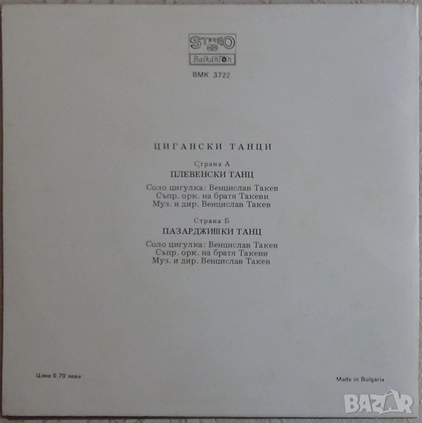 Братя Такеви – Цигански танци 7" сингъл ВМК 3722 в отлично състояние, с оригинална обложка. Цена 10.00 лева.