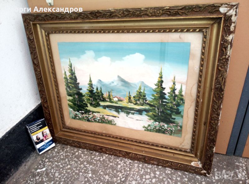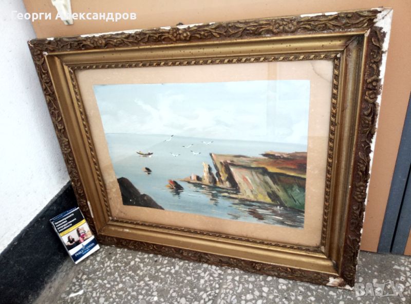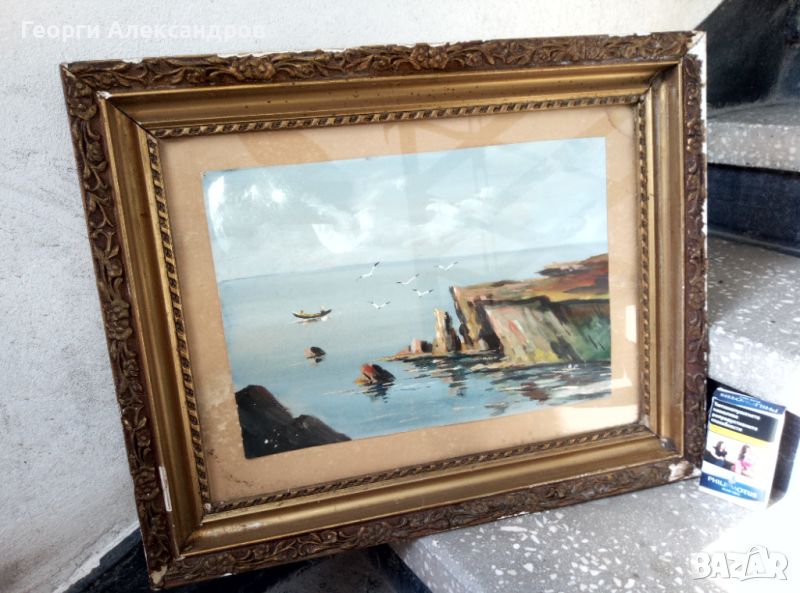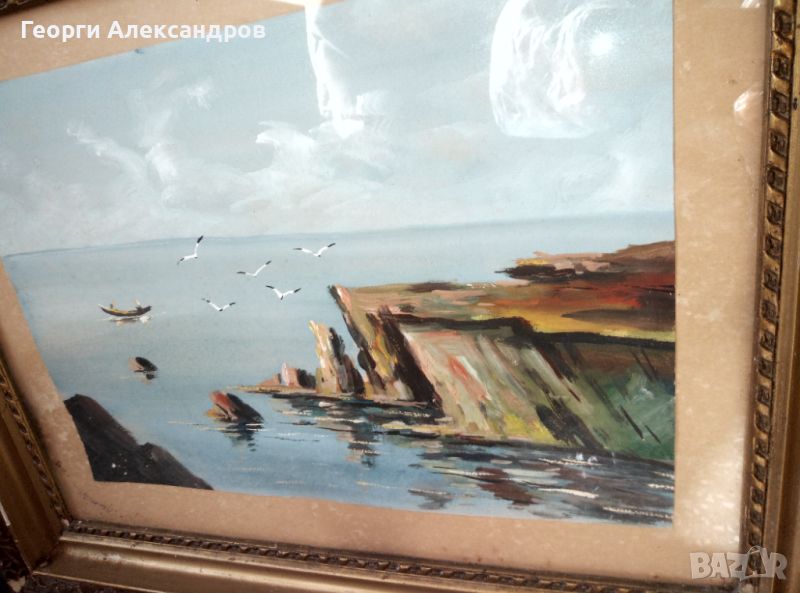 Две прекрасни големи стари картини, нарисувани майсторски и живописно - МОРСКАТА с МАСЛЕНИ БОИ върху картон, а втората - ПЛАНИНСКИЯТ ПЕЙЗАЖ, с ТЕМПЕРНИ БОИ върху картон, като самите рисунки са отлично запазени, а старите дървени рамки и паспарту може да се подменят при желание. Снимките ги ОНАГЛЕДЯВАТ! Имат СТЪКЛО, което леко възпрепятства заснемането да е 100% както трябва - НА ЖИВО са още по-цветни и красиви! СНИМАЛ съм ги и в различни режими на осветление. Размери САМО КАРТИНИТЕ: 35 на 25 сантиметра, а с рамките: 52/42см. Цената е ОБЩА, за двете! Могат да се закупят и поотделно. Изпращам по Еконт с Преглед и отстъпка-транспорт.