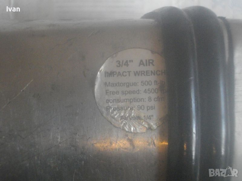 Тежък, голям и масивен ударен пневматичен/въздушен гайковерт- импакт, професионален мощен модел с голям квадрат отпред размер 3/4.
