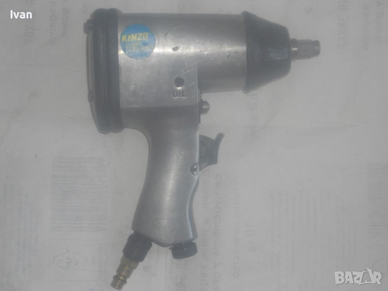 ОПИСАНИЕ на пневматичен гайковерт Кинзо. Пробван само на малък и слаб компресор с малка бутилка - не тръгва. Марка и модел -KINZO 31L161. Оригинално нидерландско холандско производство - 2005 г - Hollland - вписано. Характеристики: Скорост - 7000 об/мин. Работно налягане - 6 bar. Раверс смяна посока. Корпус - стомана с инокс неръждавейка покритие. Квардарт глава - 1/2. Регулация 4 степени. Поставен адаптер бърза връзка за компресор.