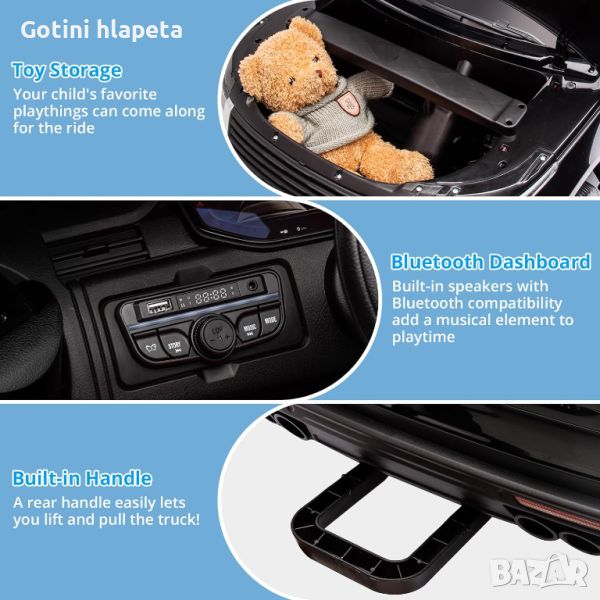 Музикални и светлинни ефекти(светещи фарове,различни мелодии и звуци)