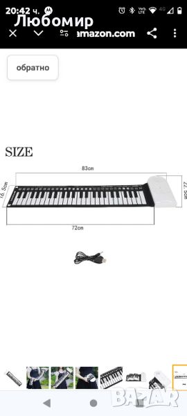 Съдържание на пакета: 1 x сгъваемо електронно пиано, 1 x USB кабел за зареждане.