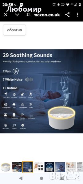 RENPHO Акумулаторна машина за бял шум, звукова машина с 8 нощни светлини за сън на бебето, машина за сън без зацикляне 29 HI-FI успокояващи звука за релаксация, за пътуване, дома, поверителност в офиса.Тази машина с бял шум има висока прецизност и звук без зацикляне. Има 7 бели шума, 7 звука от вентилатори, 15 релаксиращи природни звука (горски птици, морски вълни, пеене на щурец, огньове, влакове, махала, гръмотевици и дъжд, малки вълни, дъжд, течаща вода, капеща вода, шум, фетален звук, Приспивна песен, Музикална кутия). Sleep Sound Machine ви помага да се унесете в сън по-бързо и да се събудите освежени сутрин.Нашата машина за бял шум бебе може да помогне на вашето бебе да заспи лесно при успокояваща светлина и успокояващ звуков фон. Докато бебето се мести в големи детски стаи, нощната светлина осигурява допълнително усещане за безопасност и помага на децата да се чувстват сигурни. Звуковата машина с осем режима на мека нощна светлина и висококачествен източник на звук за успокояване на емоциите на бебето, за да избегне плач и раздразнителност. Спящото бебе означава повече сън за цялото семейство.Звуковата машина с бял шум ви маскира по-добре и ви успокоява. Настройте ефективно шума. Без значение за увеличаване на концентрацията или дрямка, използвайте аудио входа, за да се насладите на естествените звуци. Може да се използва за изолиране на шума по време на работа, за поверителен разговор или за намаляване на емоционалния дискомфорт. Идеална джаджа за вашето семейство и приятели, когато имате рожден ден, Коледа, Ден на бащата или Ден на майката.Тази машина с бял шум за възрастни е добра за сън. Режимът на таймера може да се възпроизвежда непрекъснато или 30,60,90 минути таймер за автоматично изключване. Той запомня трайните настройки на светлината, звука, силата на звука и таймера. Така че не си правите труда да натискате бутони през цялото време! Когато използвате дизайна на копчето за непрекъснато регулиране, можете да го завъртите бавно и да изчакате силата на звука постепенно да се увеличи. И избягване на досадния процес на настройка! Звуковата машина е страхотна за бебе, възрастен.Звуковата машина за сън може да се презарежда. 2,5 часа време за зареждане и повече от 9 часа работа. Това е перфектен заместител на старата машина с бял шум, която се включва. Чудесно за използване преди лягане за възрастни, семейство, деца, а също така може да бъде страхотна джаджа за вашето семейство или приятели.