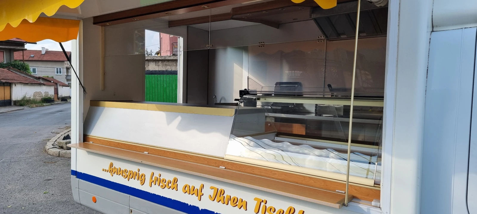 Нов внос, оригинален мобилен кемпер-КАТО НОВ, чисто нов фритюрник, чисто нова газова скара, чисто нов тостер, кафе машина, хладилна витрина от пред, двойна мивка+бойлер+резервоари за мръсна и чиста вода, електрическо отваряне на страничния капак, инверторна система за ток 3000W. МОБИЛНИ КУХНИ-ФРАНИ ЕООД ВИ ПРЕДЛАГА-ДО ОБОРУДВАНЕ, ПОДРЪЖКА НА ВАШИЯ МОБИЛЕН КЕМПЕР С ГАРАНЦИЯ. .. .. .