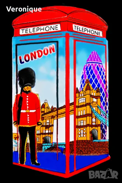 9. Магнит Лондон, Великобритания/ във форма червена тел. кабина - един от символите на Лондон, Тауър Бридж и кралски гвардеец; 4.1 х 7.8 cm – 12 лв