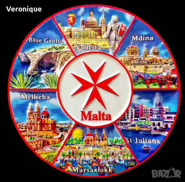 3. Магнит Малта / изгледи от Валета, Мдина, С.Джулиан, Марсашлок, Мелиха и Синята лагуна диам.7.3 - 13 лв