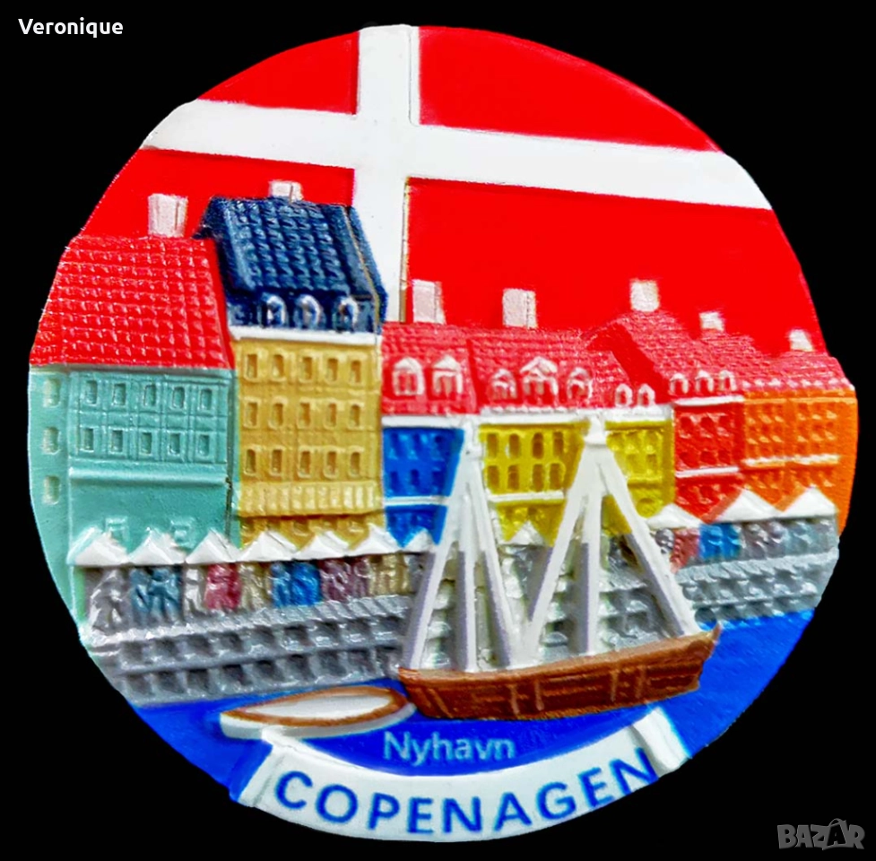 32. Магнит Копенхаген, Дания/ изглед от крайбрежната ул.Нюхаун с датското знаме;5.9 x 5.9 cm - 12 лв