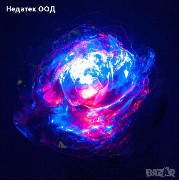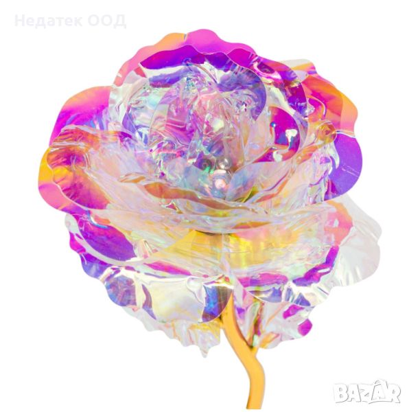 Холографска роза със златно стъбло и светлина. Работи с 3 батерии тип LR621 (включени).