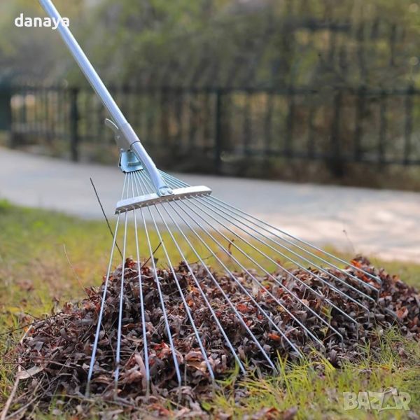 търмък гребло за листа с регулируема широчина. Незаменим инструмент за събиране на листа и отпадъци от градината.