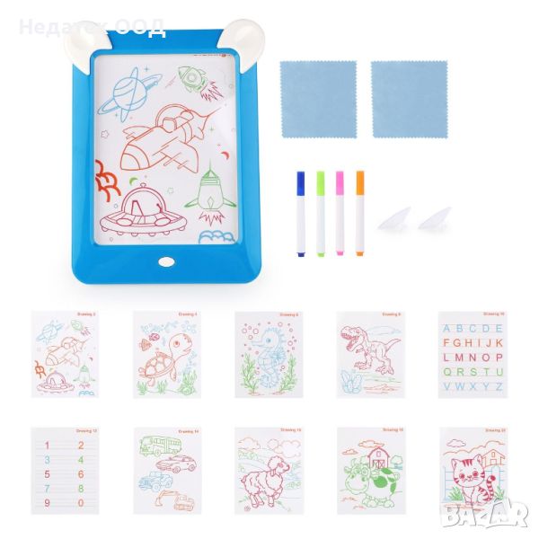 Магическа дъска за рисуване със светлина, Пиши/ изтрий, Синя → Обява 46668196
