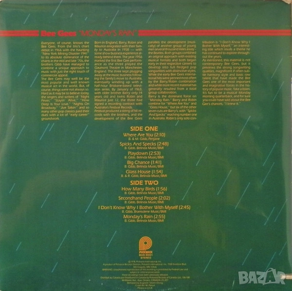 Bee Gees – Monday's Rain, USA LP в много добро състояние VG+. Цена 10.00 лева.