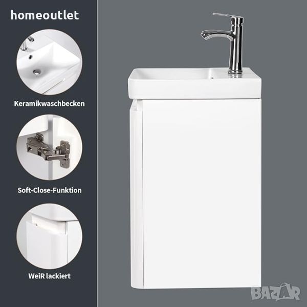 Основният шкаф е изработен от MDF с демпферни панти, подходящ за мокри помещения, влагоустойчив.Умивалникът е изработен от висококачествена керамика.