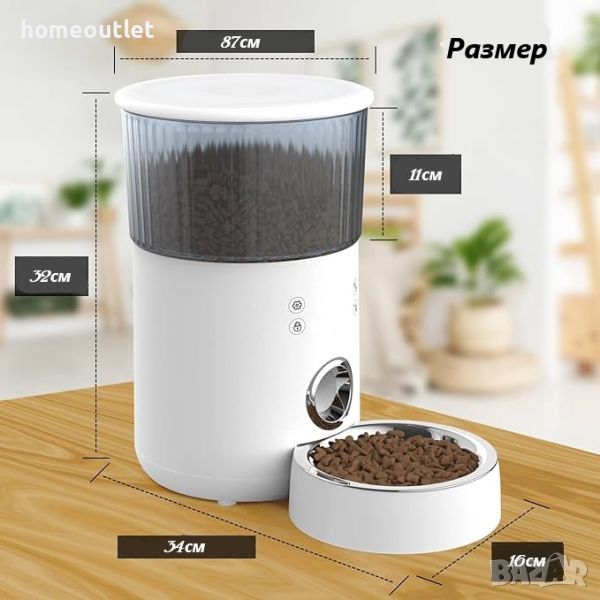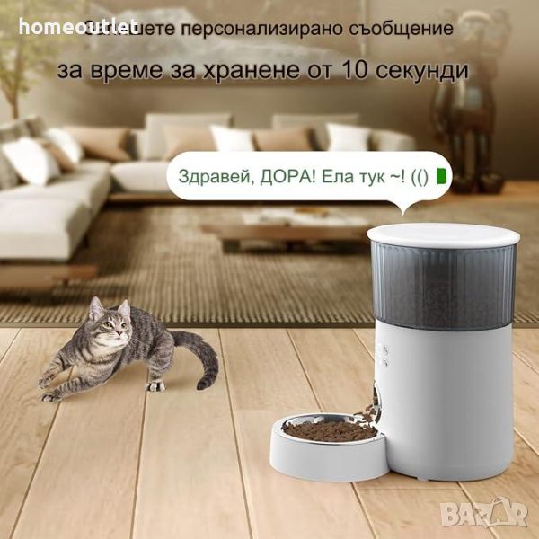 Хранилката за домашни любимци с настройка на сензорен екран е с голям капацитет от 4 л, програмира до 5 хранения, според графика на вашия домашен любимец;