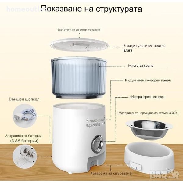 Всички части на хранилката могат да се разглобяват за почистване, за да се гарантира безопасността на домашните любимци.
