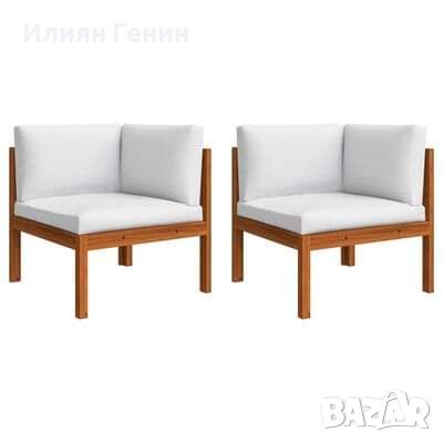 Ъглови дивани за вътрешен двор 2 бр. с възглавници от масивно акациево дърво