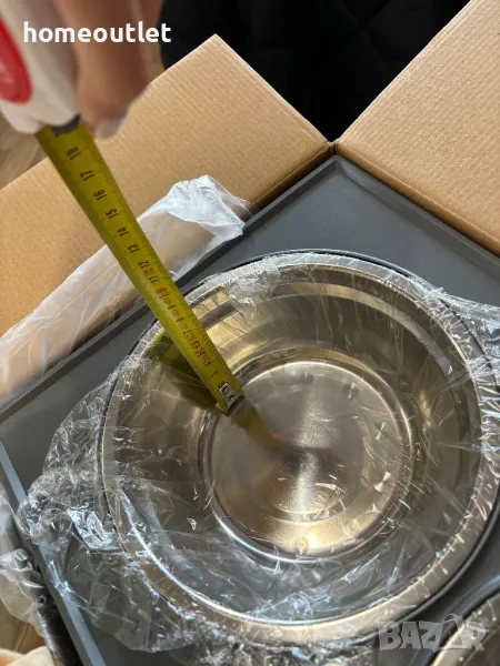 Комплектът включва две купи от неръждаема стомана, които са устойчиви на ръжда и много издръжливи и подложка, изработена от специална пластмаса, предназначена за хранителната индустрия, безопасна и лесна за почистване.