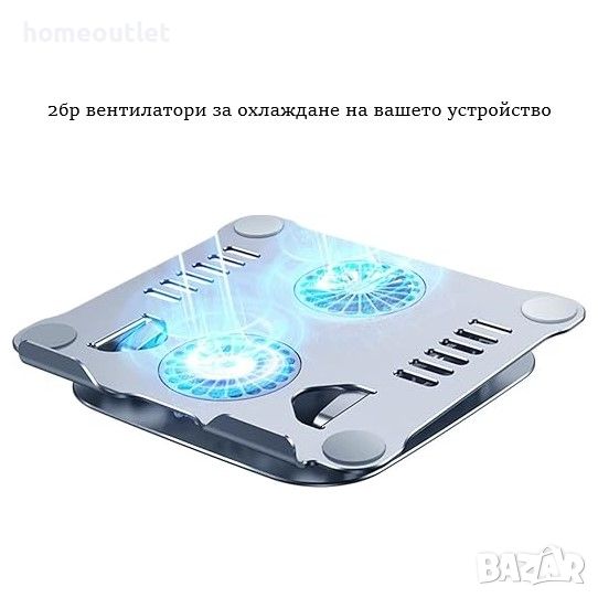 Стойката за лаптоп е проектирана с 2 охлаждащи вентилатора, които ще ви помогнат да охладите вашия лаптоп много по-бързо от другите стойки за лаптоп, поддържайки го да работи на висока скорост. Може да се използва и като настолен вентилатор за вас, когато е горещо.