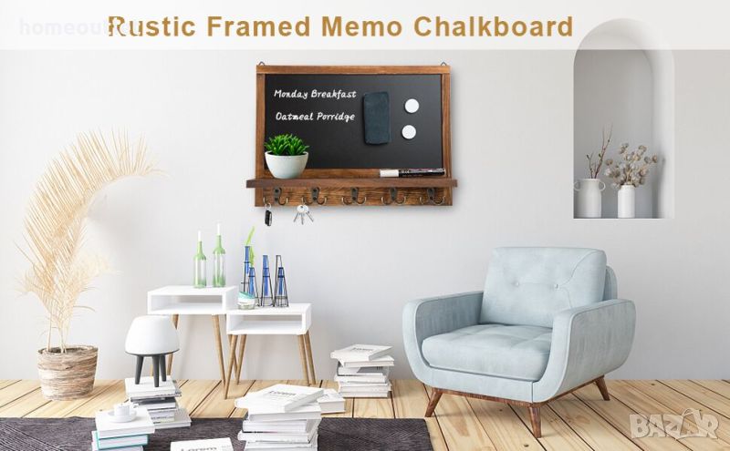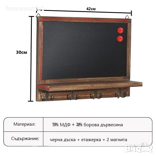 Декоративната поставка разполага с магнитна черна дъска с размери 38,5 × 20,5 см, която ви позволява да пишете важни ежедневни ангажименти, мило послание за любим човек или да рекламирате нови предложения в кафенето, магазина, ресторанта, офиса и др.