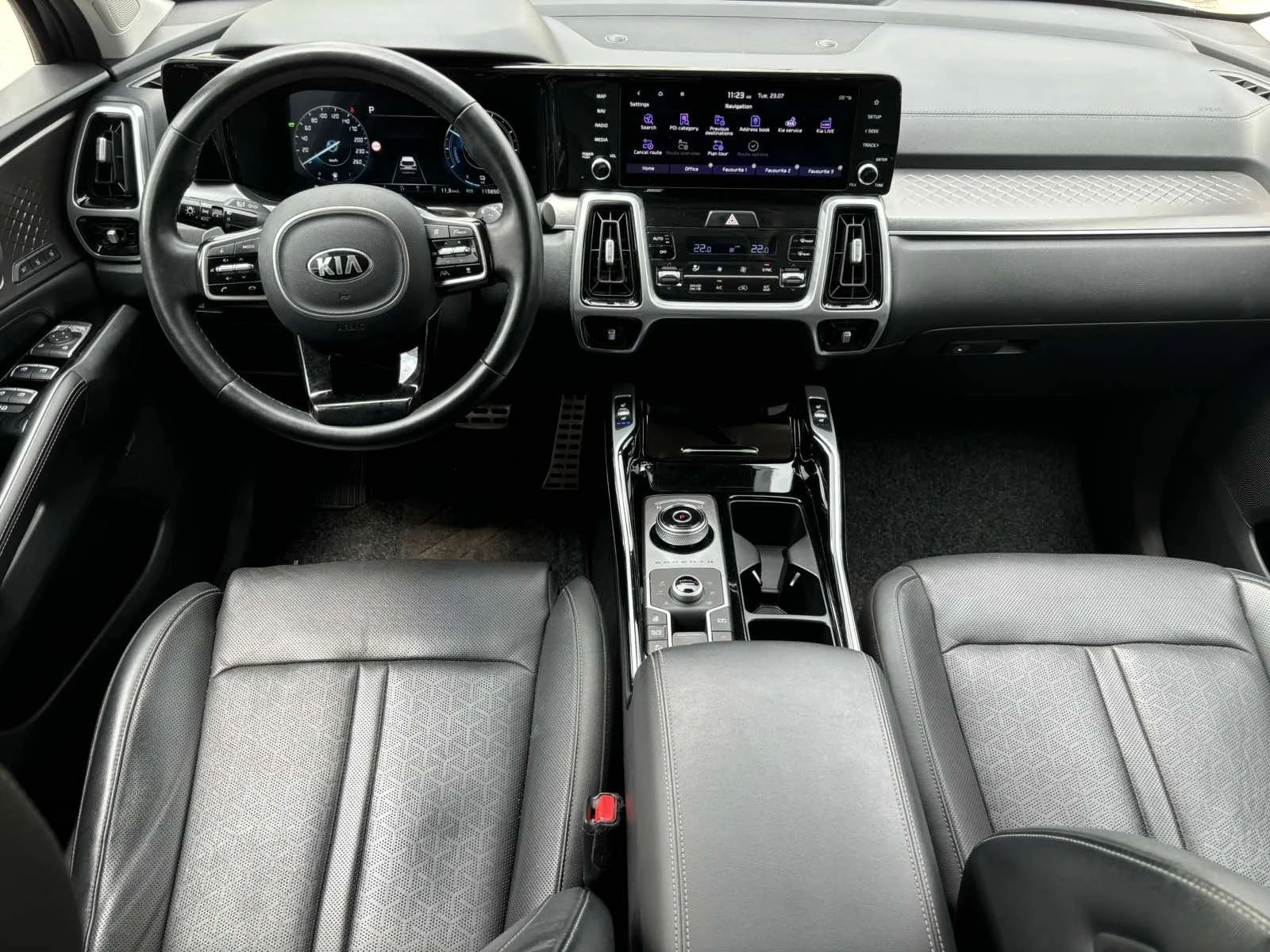Предлагаме KIA Sorento 6+1 неразличим от нов. Автомобилът е напълно реален и може да се види на място тук в България. Без никакви удари, ремонти по купето или силовата линия. Има всички екстри за модела, 19 цола джанти, дигитално табло, 360 градусова камера, уникален черен салон с подгрев и обдухване. Дори има подгрев и на задните седалки, както и протектори на повечето места в интериора където може да се допрете. Това е съхранило напълно автомобила от всякакви малки драскотини. Има спортни спирачни дискове и апарати NEOTECH. Автомобилът е 6+1 места,