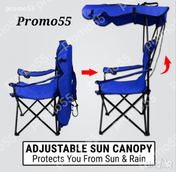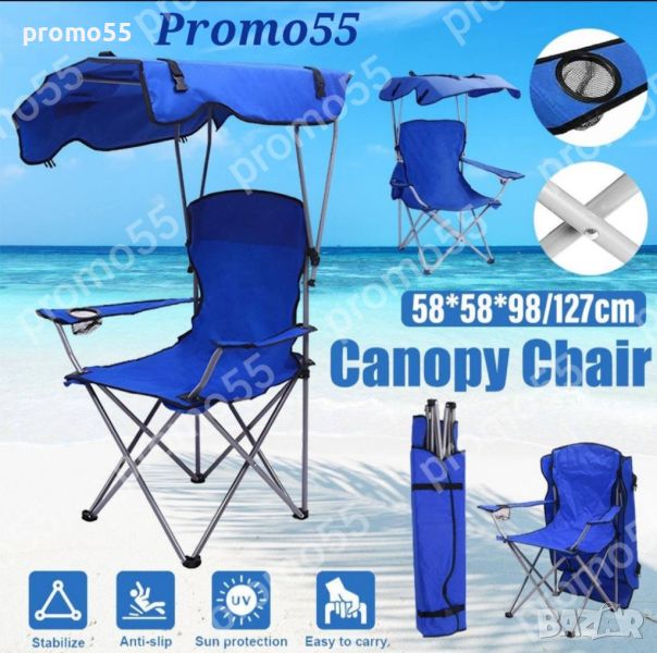 Сгъваем стол със сеник, туристически стол , стол за риболов и плаж