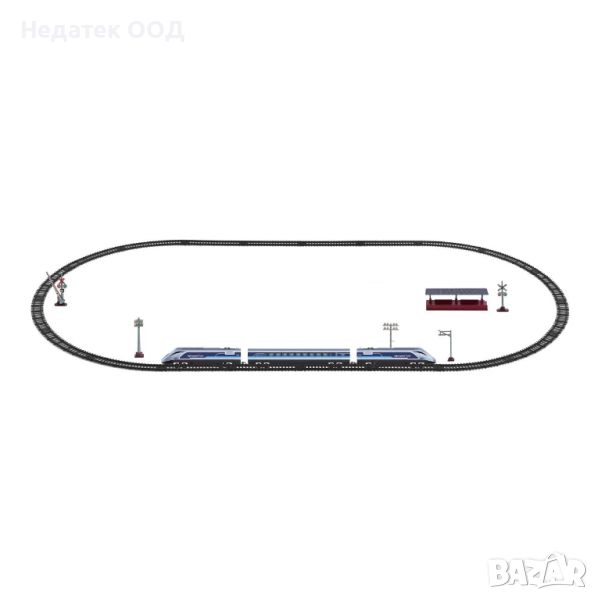 Играчка за момче, високоскоростно градско влакче с 2 двигателя и 1 голям вагон. Релсите образуват железопътна линия с овални размери 171x125cm & 194x101cm, кръгла 101cm или оформена 240x101cm. Има реалистичен звук и светлини на влака. Работи с 2 батерии АА (не са включени).