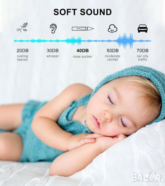 - Иновативен дизайн: с този електрически назален аспиратор имате рутинно почистване без стрес. Устройството е оборудвано с функция за успокояваща светлина и музика, за да улесни Вашето бебе. Освен това работи тихо, за да осигури спокойствието на вашето бебе по време на употреба.
