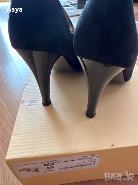 Черни велурени обувки с 10 см ток, обувани веднъж за един повод без забележки в кутия.