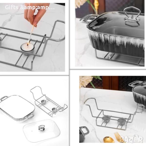 Порцеланов съд за топло сервиране със стъклен капак - черен със сребърно → Обява 46673858