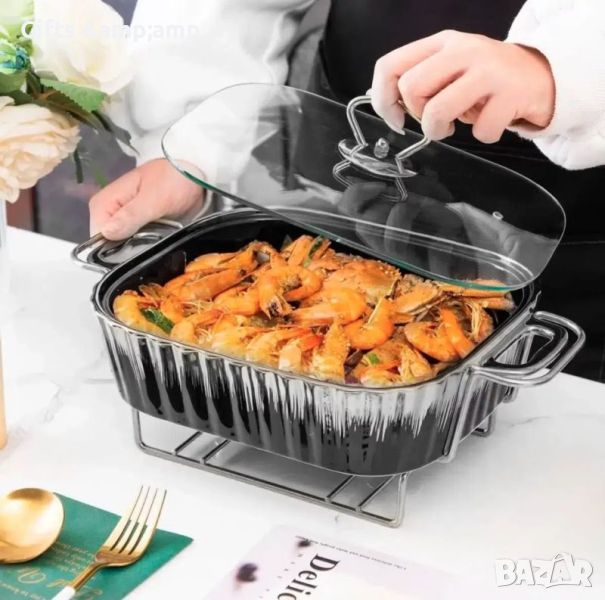 Порцеланов съд за топло сервиране със стъклен капак - черен със сребърно, снимка 1 - Съдове за готвене - 46673858 Порцеланов съд за топло сервиране със стъклен капак - черен със сребърно, снимка 2 - Съдове за готвене - 46673858 Порцеланов съд за топло сервиране със стъклен капак - черен със сребърно, снимка 3 - Съдове за готвене - 46673858 1/3