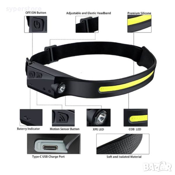 Фенер Челник Digital One SP00958, M28 , лед лента за глава, гъвкава, сензор за движение, презареждаеми батерии