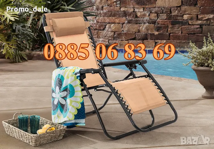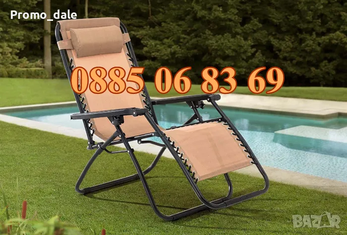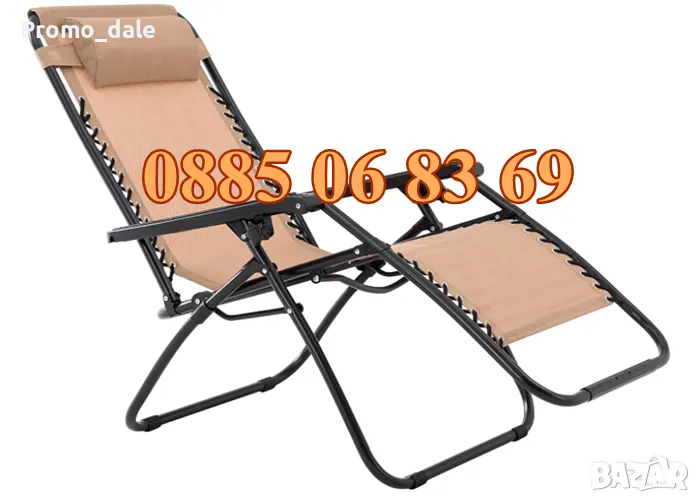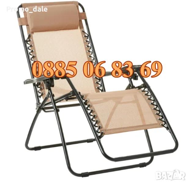Сгъваем стол шезлонг, с възглавничка за главата. Подходящ за къмпинг и туризъм. Многофункцинален, лек и компактен. Лесно сгъване, разгъване и преминаване от една функция в друга.