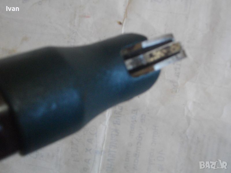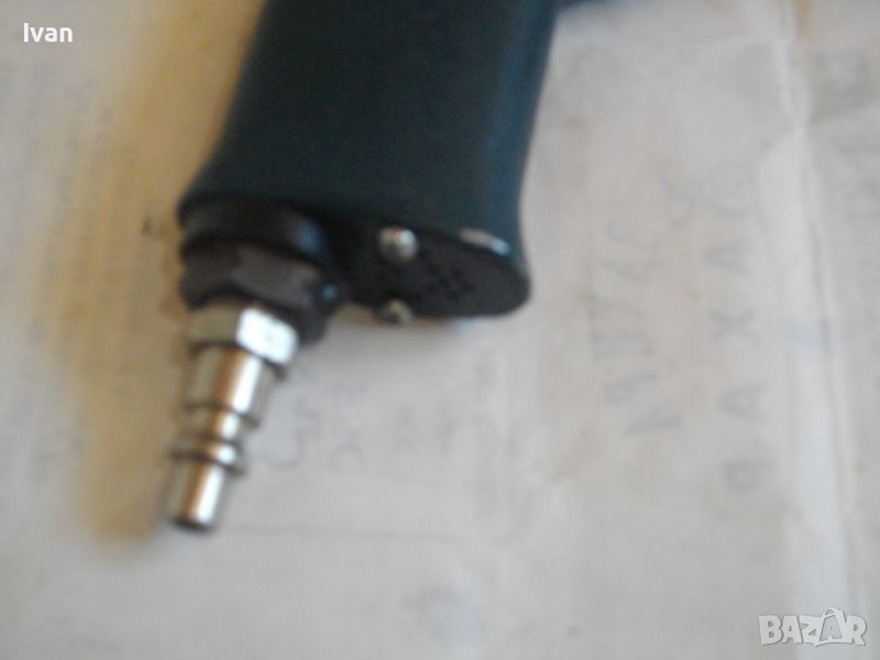 Много запазен външен вид със съвсем бегли следи от употреба. Поставена бърза връзка/адаптер за компресор. На малък и слаб компресор машината не тръгва. На голям компресор при 7 атмосфери ножицата тръгва.