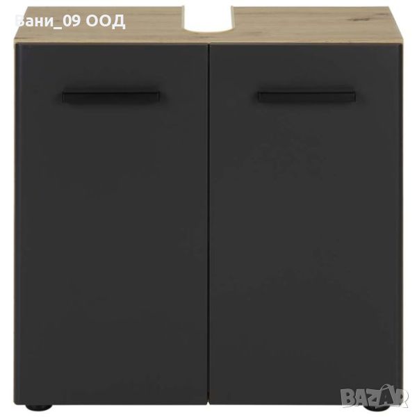 шкаф за баня, изработен от ПДЧ и MDF, стилно декорирани в сив цвят и светъл дървесен декор. Шкафът е с размери Ш:60/Д:30/В:59.6 см, проектиран за поставяне на пода. С него деликатно ще прикриете сифона под мивката. Съвсем спокойно в шкафа може да поставите всички предмети, които за удобство се съхраняват в банята, като по този начин винаги ще бъдат надеждно защитени от водните пръски.