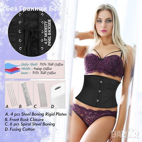 Нов Модерен черен корсет от мрежа и памук за стягане на талия тренировки