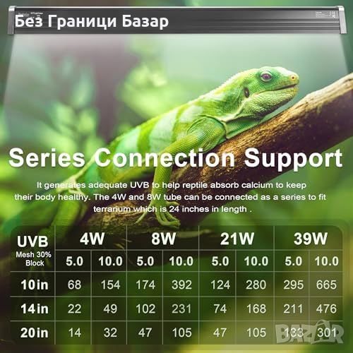 Нова UVB 5.0 Флуоресцентна лампа за влечуги, 39W, светлинен капак