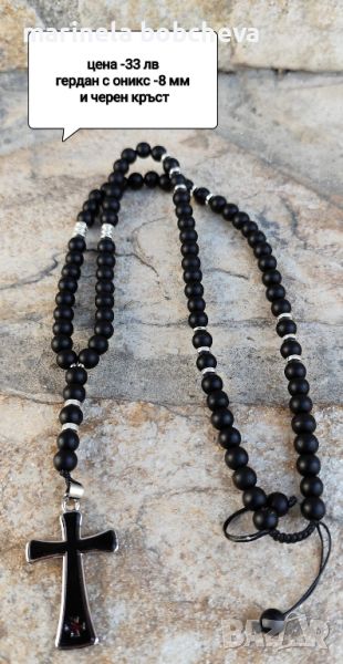 Мъжки ръчно изработени гердани от естествен камък и стоманен кръст!