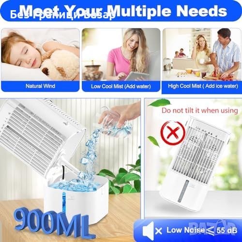 Таймер с 2/4 часа, 900 мл воден резервоар за 6-8 часа охлаждане
