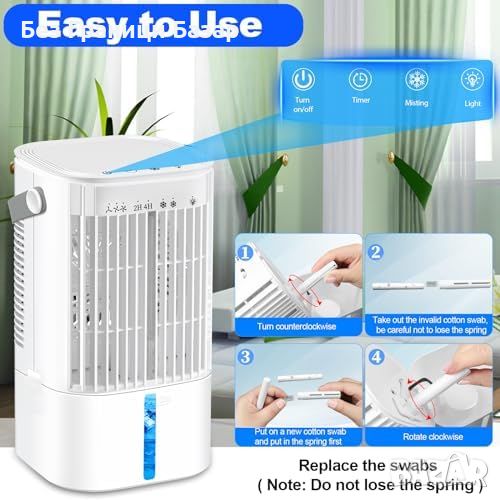 Нов Компактен охладител с овлажнител и 3 скорости за дом и офис климатик
