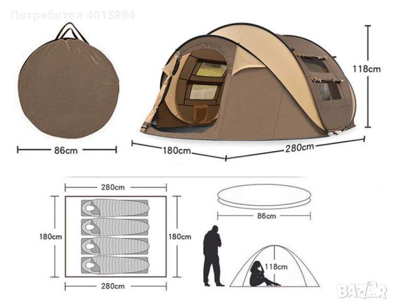 Палатка с автоматичен механизъм на сглобяване предназначена до 4 души - PALAT8 → Обява 46678472