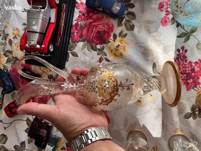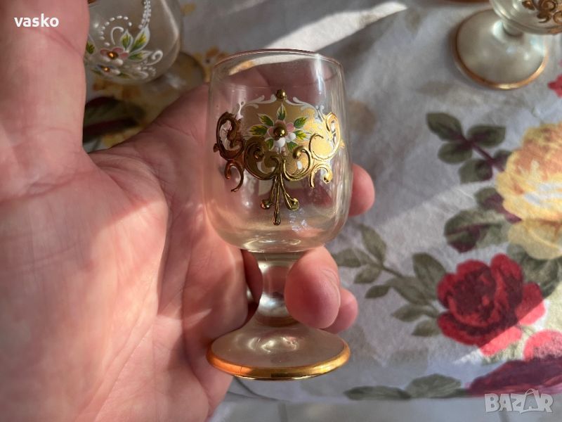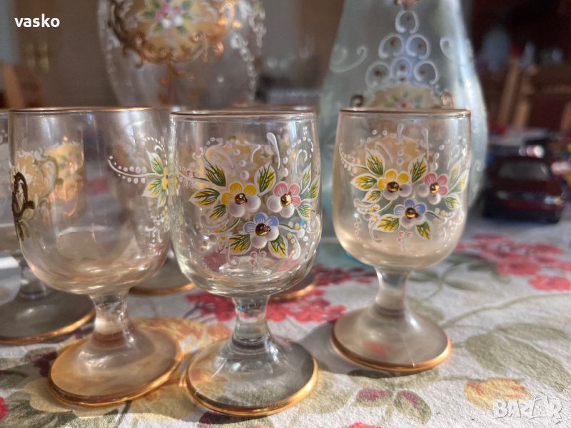 Продавам сервиза за ликьор от снимките-Мурано със позлата,ръчна изработка,купуван нов от Венеция преди около 40 години,перфектен,никога не е ползван-откакто е купен е стоял във витрина.ИМА НУЖДА САМО ДА СЕ ПОИЗМИЕ-СТОЯЛ Е ОКОЛО 40 ГОДИНИ!САМО ЛИЧНО ПРЕДАВАНЕ ВЪВ ГРАД ВАРНА!