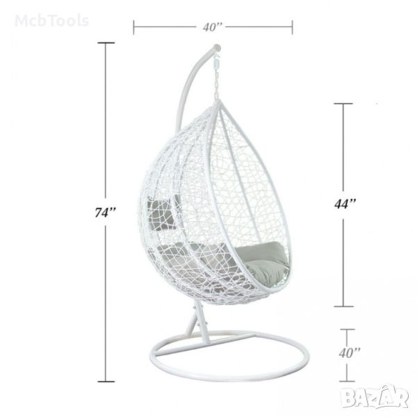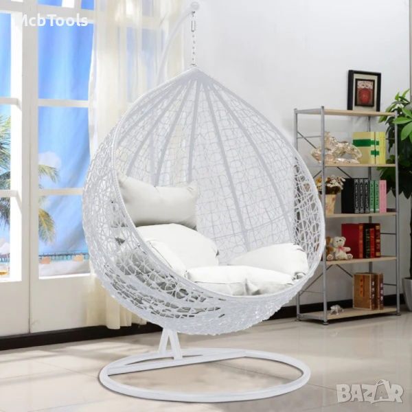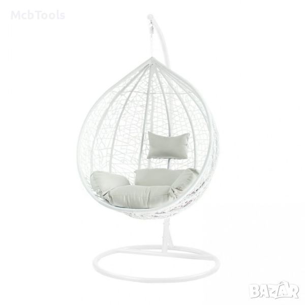 Голяма Водоустойчива Градинска Люлка бяла – Висящ Ратанов Стол