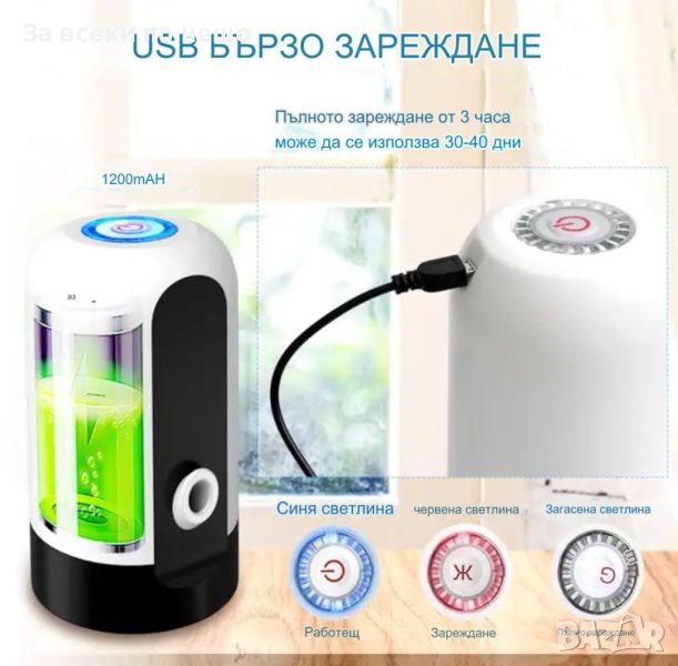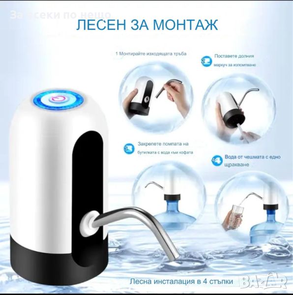 Автоматично управление: Просто поставете помпата на бутилката и натиснете бутона. Тя автоматично ще достави желаното количество вода бързо и лесно.