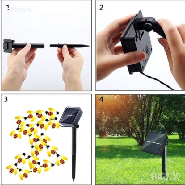 Втори модел: LED декорация с пчелички, верига от 30 светодиода със соларно зареждане, 5 метра, многоцветни.