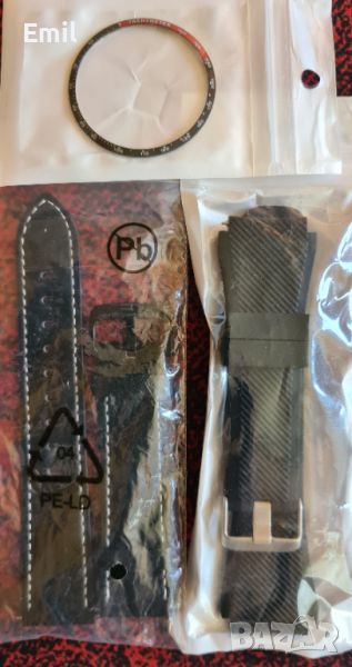 Има протектор на дисплея + две нови каишки(кожена и силиконова)