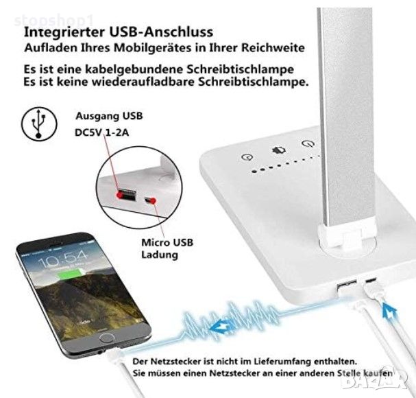 LED настолна лампа, димируема настолна лампа, 5 цвята и 10 нива на яркост, нощна лампа, USB порт за